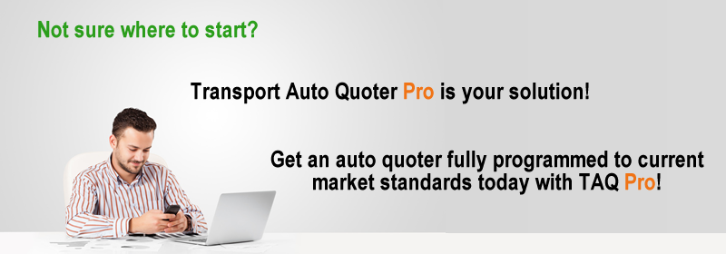 Get Started Right Now!The Pro version of Transport Auto Quoter comes equipped with current market pricing. Setting up an accurate auto quoter can take years of experience and hours of work that you may not be able to spare. TAQ Pro is your solution. A TAQ Pro account is instantly set to accurate, current market standards. Create your account today and be quoting within minutes! |